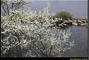 높이 10m에 달한다. 잎은 어긋나고 타원형의 달걀 모양 또는 거꾸로 선 달걀 모양이며, 길이 6~12cm로서 뒷면에 털이 있으며, 가장자리에 예리한 톱니가 있고 잎자루 끝에 2개의 꿀샘이 있다. 꽃은 4월에 잎보다 먼저 피고 3∼6개가 산형(傘形)차례로 달리고, 작은꽃자루에 털이 있다.