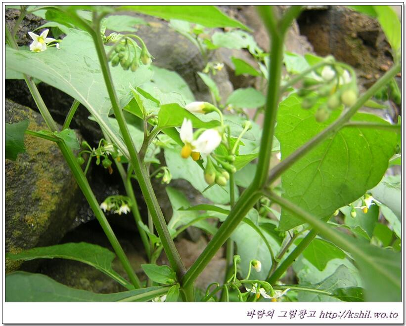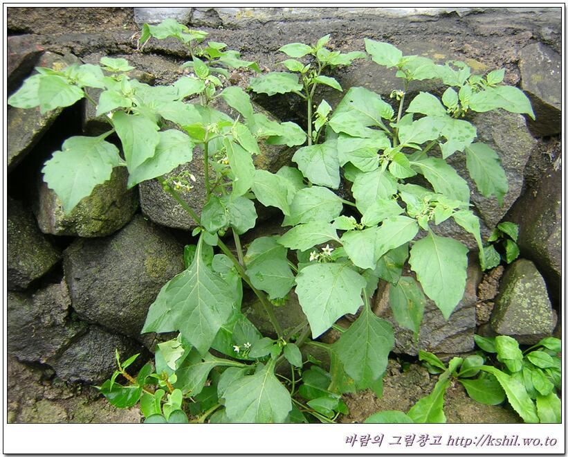 가마중·까마종이·깜뚜라지라고도 한다. 밭이나 길가에서 자란다. 높이 20∼90cm이다. 줄기는 약간 모가 나고 가지가 옆으로 많이 퍼진다. 잎은 어긋나고 달걀 모양이며 길이 6∼10cm, 나비 4∼6cm이다. 가장자리에 물결 모양의 톱니가 있거나 밋밋하고 긴 잎자루가 있다.